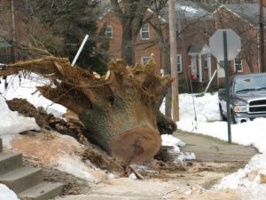 Among areas where large trees were uprooted were N. Manchester Street at 9th Road, near McKinley Elementary School, and the 1200 block of Harrison St., off of Washington Blvd.