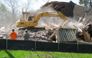 The old Westover library on 1800 North Lexington Street was torn down yesterday. The 67-year-old building was closed in October after the library moved to a new building at 1644 North McKinley Street.