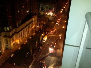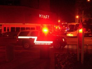 Crystal City Hotel Evacuated Due to Fire — The Hyatt Regency Crystal City was evacuated Saturday night due to a smoky fire inside a large trash compactor. Arlington, Alexandria and airport firefighters worked to extinguish the blaze, we’re told. Photos below courtesy Doug Wendt.