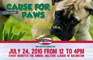 Add Cause for Paws to the list. Taking place at The Bungalow in Shrlington (2766 South Arlington Mill Drive) from noon to 4:00 p.m. on Saturday, the event is being described as a “pet adoption charity auction.”