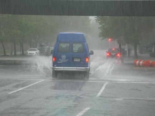 Arlington was pounded by high winds and heavy rain this afternoon as a severe thunderstorm rolled through the area, turning roads into rivers and knocking out power in several parts of the county.