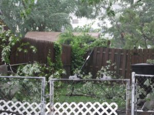 Down the street, there was another large tree uprooted. It crushed a fence as it came crashing down across two front yards.
