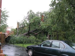 Down the street, near the corner of South Four Mile Run Drive and South Cleveland Street, a large oak tree fell and came crashing through the house of one of Nash’s neighbors. The house will likely be condemned, said a county employee on the scene.