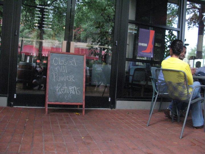 At least one bar valiantly stayed open, however. Bistro Bistro was serving bar patrons by candlelight and flashlight, while groups of people casually sat drinking beers on the outdoor patio.