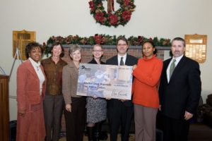 Arlington affordable housing outfit AHC, Inc. and at-risk women’s shelter Doorways for Women and Families both accepted the donations at a press conference in Reston.