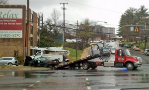 A black coupe suffered heavy front-end damage after slamming into the pole while heading eastbound on the Pike. Arlington firefighters were called in to help extricate the driver from the vehicle. The driver’s condition is not known at this time.