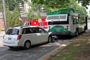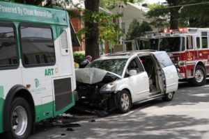 A minivan slammed into the back of an Arlington Transit (ART) bus at the intersection of N. Glebe Road and 4th Street, near Ballston, just after 11:30 this morning.