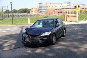 The accident happened at the intersection of Washington Boulevard and Quincy Street. Two people were transported to the hospital with non-life-threatening injuries.