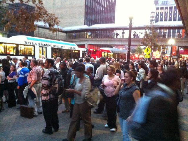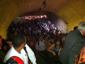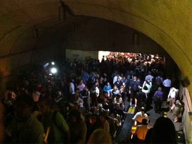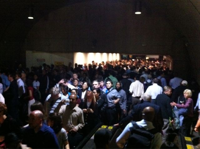 The station was packed with passengers after Orange Line trains were halted for a person struck by a train at the Clarendon Metro station. Firefighters at the station requested a mass casualty response when several people reportedly requested medical attention while trying to climb the station’s long escalators, which were all out of service. Firefighters and paramedics from Arlington, Alexandria, Fairfax County and Ft. Myer were dispatched to the station, according to emergency radio traffic.