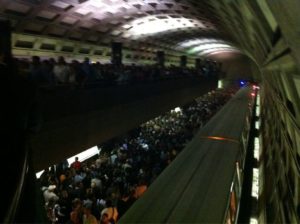 As rescuers worked to free the man from underneath the train, power was shut off to the third rail and trains were stopped around the station. With almost nowhere else to go, Orange Line trains started offloading passengers at Rosslyn. Soon, the Rosslyn station started filling up with people — so many people that the escalators were shut down so they wouldn’t become overloaded.