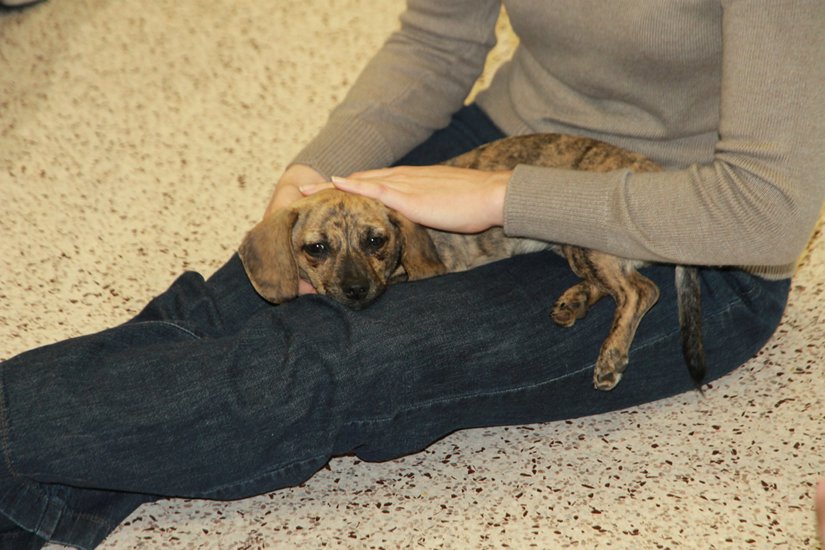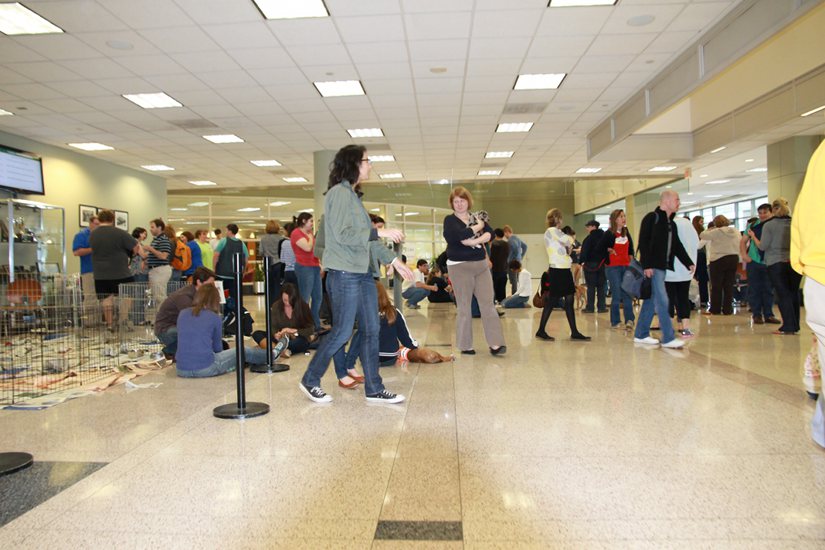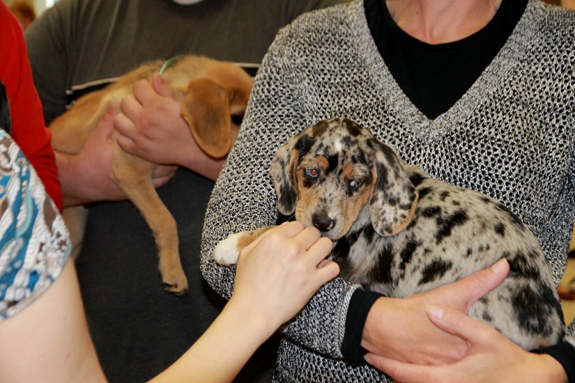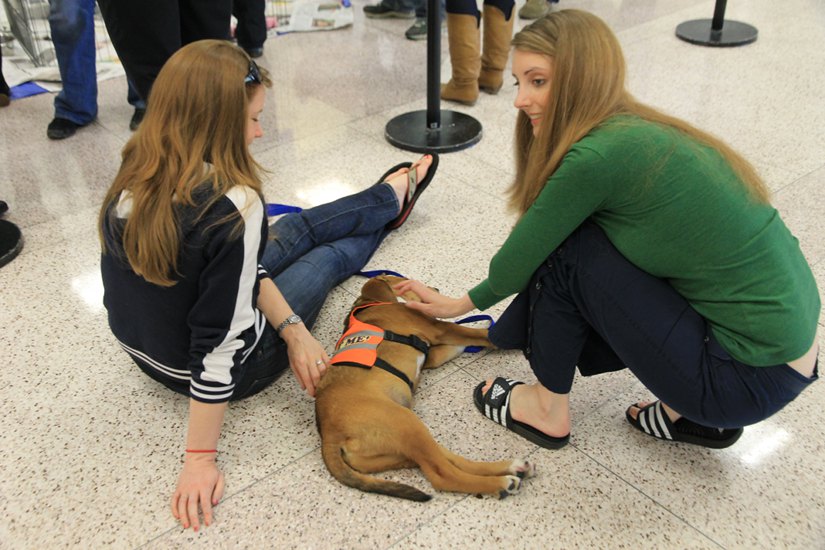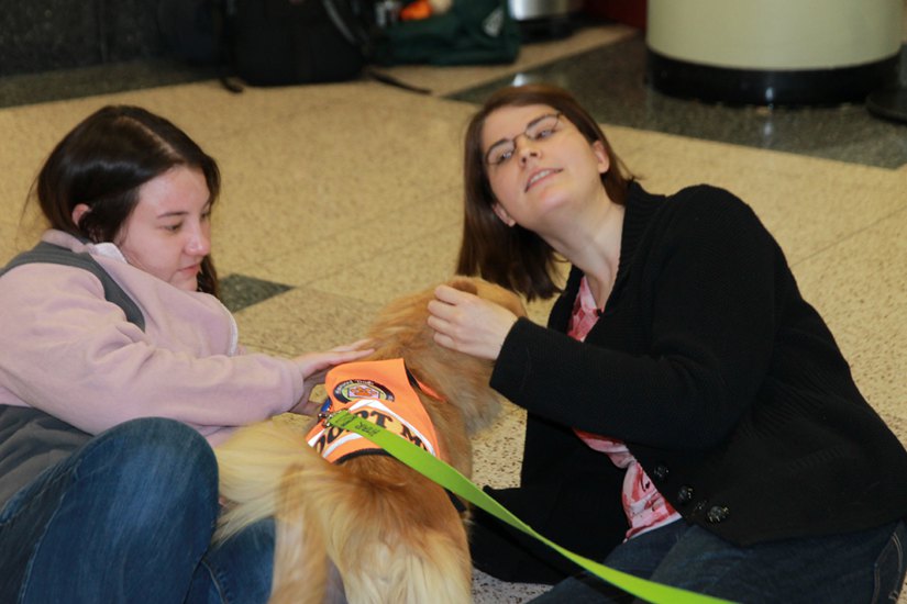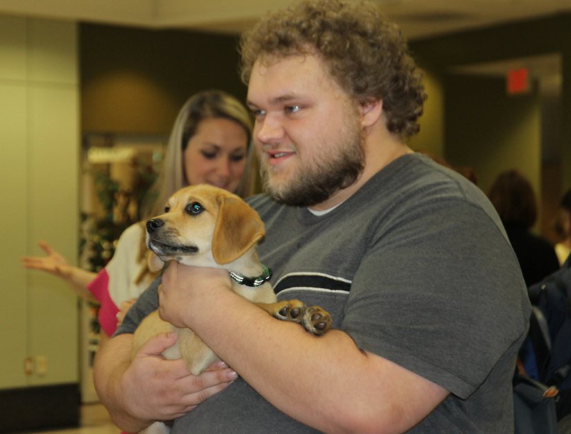 Students had three hours to leave the books behind and cuddle with some furry friends during “Puppy Day.”