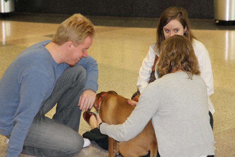The study break is also beneficial for the pups, who are brought in from A Forever Home Rescue Foundation. Representatives from the dog rescue group were on hand to assist with giving out information and to help those interested in adopting one of the puppies.