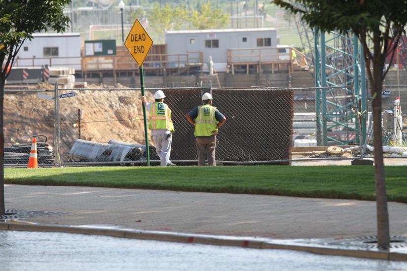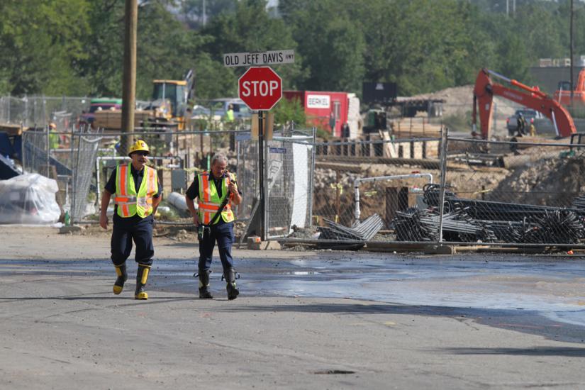 The water also flowed down Long Bridge Drive toward 10th Street S. and “gushed” into the Boeing construction site for several hours, officials say. Crews deployed measures to stop the water from flowing into the site and are now pumping water out from the construction pit.
