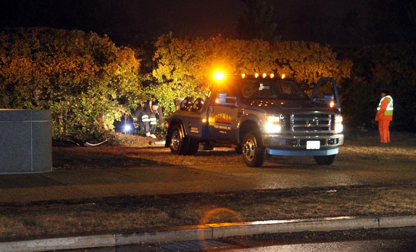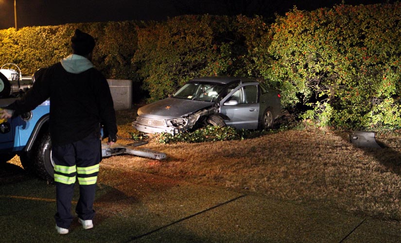 Around 12:20 a.m., a car took off when an Arlington County police officer attempted a traffic stop on Route 110, near the Pentagon. Following protocol, the officer did not attempt to chase the car. A short time later, however, another officer reported via radio that a car had run off Memorial Drive and crashed through some bushes next to the Arlington National Cemetery Metro station. The car, a Saturn sedan, was later confirmed to be the same one that did not stop for the first officer.