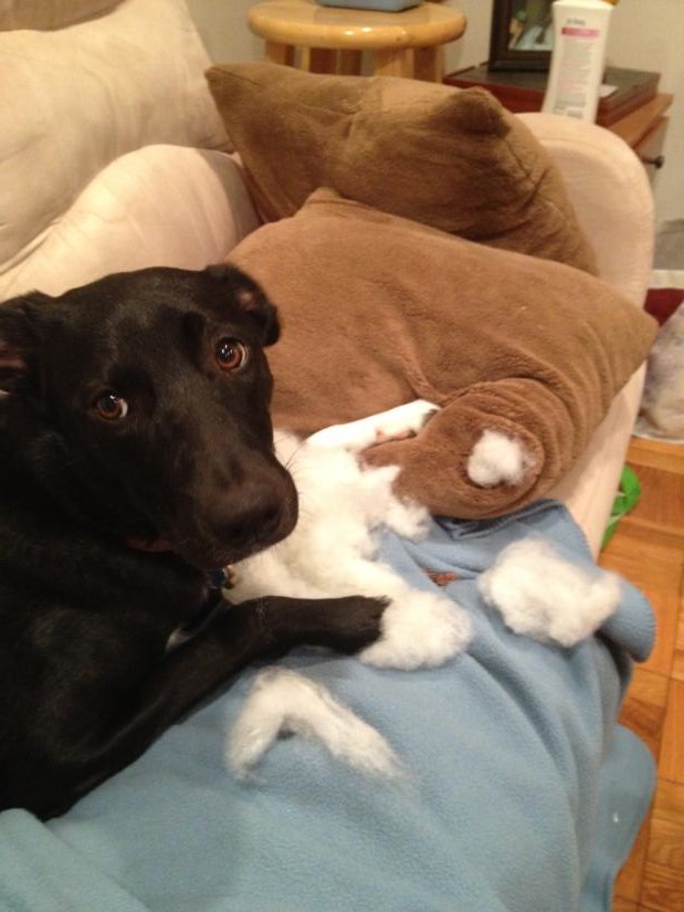 Penny is a very active and enjoys playing soccer, running and wrestling with other dogs at the park, and jumping on all her neighbors to greet them (sorry, neighbors). When she doesn’t get enough exercise she lets us know by destroying objects around our home. We’re very impressed with her communication skills. Since we can’t take her running with us until she is a year old we are just keeping the throw pillows out of her reach for the time being.