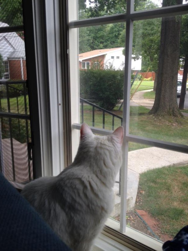 Larger than the average housecat, Barry’s physical presence can be intimidating, but his gentle demeanor immediately puts people at ease. He is patient, affectionate, and very tolerant. Barry is extremely chatty and greets us when we get home, calls to us from various spots in the house, and wakes us when it’s time for first breakfast at 5:30 am.