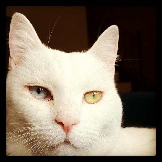 Barry White is an 8-year-old, white, deaf, odd-eyed Turkish Angora. Born in Bosnia, Barry was a stray who was adopted when he was approximately 6 weeks old. Barry lived with his first owner in Bosnia until approximately 2 years ago. In May 2012, he was taken to the Alexandria shelter when his owner could no longer care for him. The staff at the shelter identified him as a special needs case and immediately enlisted the help of Vivian Bacon and King Street Cats (KSC) to help him find his forever home.