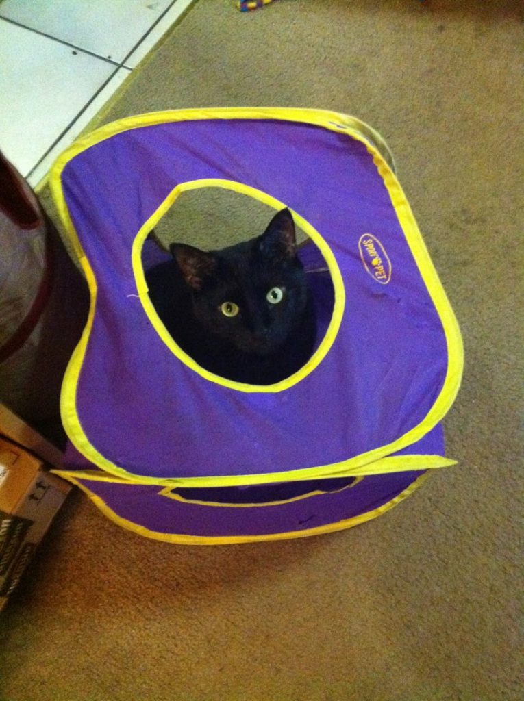 Being such a literary and cultured cat, it’s hard for Severus to keep up with all the Arlington pawparazzi, particularly since his dark black coat makes picture-taking difficult. Good thing his bright green eyes and fat cheeks make him the region’s most photogenic feline! Most everyone who meets Severus thinks he’s a dog in cat’s clothing. He meows incessantly, sits at the door waiting every time you come home, licks your face to wake you up in the morning, and loves his walks outside (but always with a leash). He’s a cat of many seasons, but his favorite is springtime, when he can stare out the window and meow at squirrels and lizards. His second favorite season would be winter, where he not only gets to wear his favorite hooded sweater, but also gets his yearly rabies vaccine (health is Severus’ top priority!)