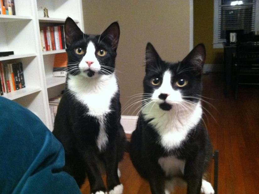 Gus and Tux are just about the most dapper cats around. Every day they sport their tuxedos just to lounge around the house and watch birds from the windows. They are about 1 1/2 years old and were adopted from local rescues in Arlington.