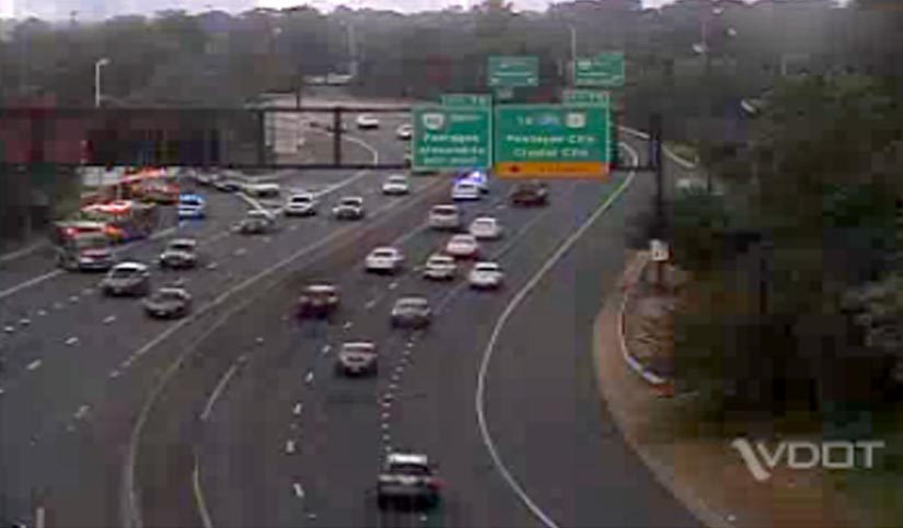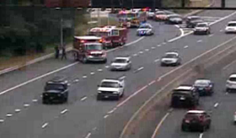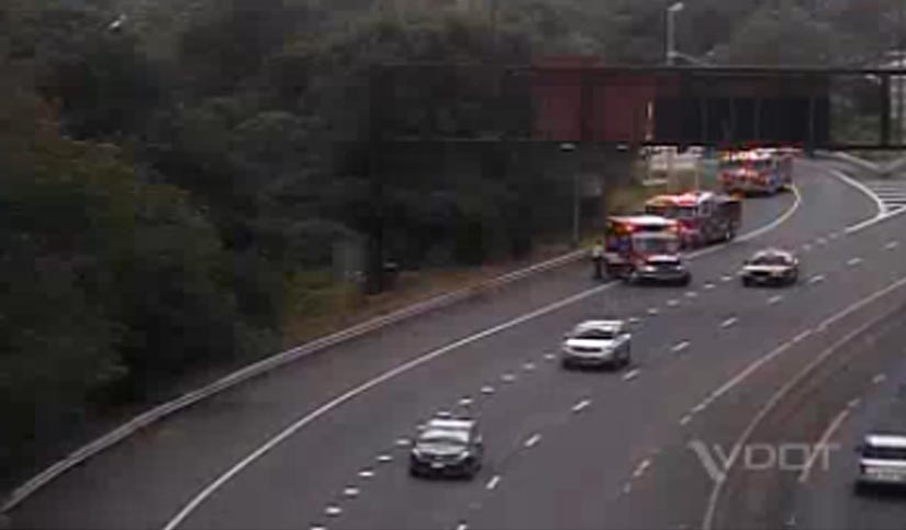A car ran off the road and into the woods on westbound I-66 at the Route 110 ramp, near Rosslyn.