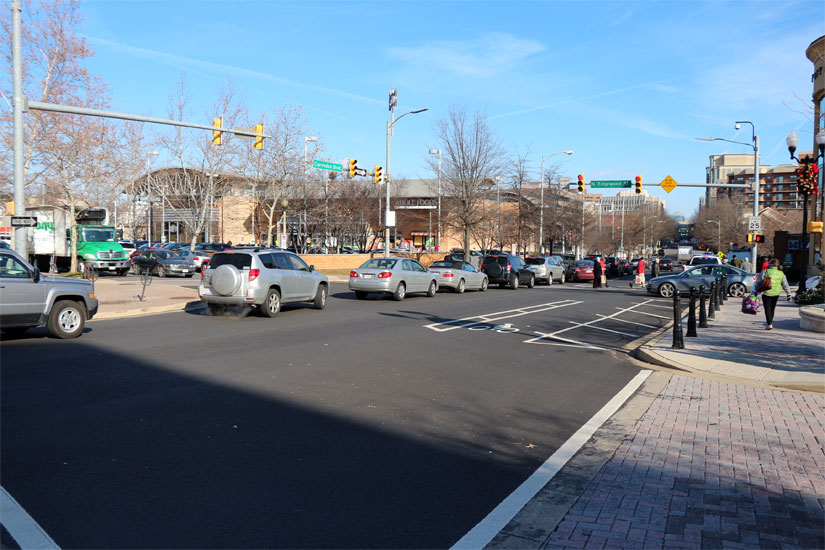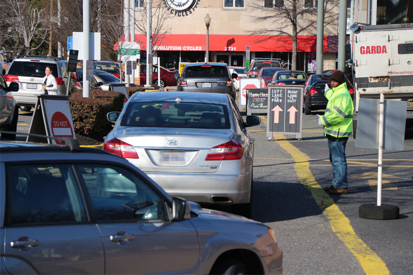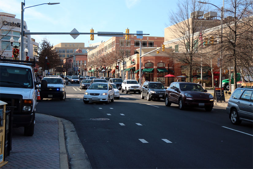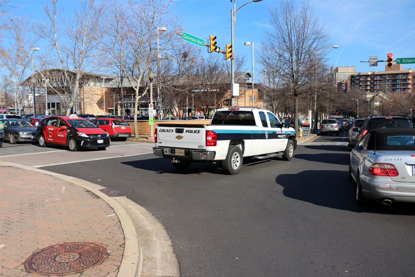 Part of the problem, according to the responding officers, is cars parking — legally — in pay spots on the left-hand side of Clarendon Blvd between the entrance to Whole Foods and N. Edgewood Street. That causes cars waiting to turn into the store’s parking lot to wait in one of the travel lanes.