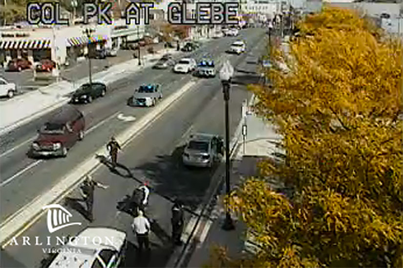 A 911 caller said the man had threatened him with a gun during some sort of confrontation, according to scanner traffic. According to Arlington County Police spokeswoman Ashley Savage, the incident started as a verbal confrontation between the caller and the man over the caller allegedly ogling the man’s girlfriend while the couple was stopped in their car on Glebe Road near the Bank of America.