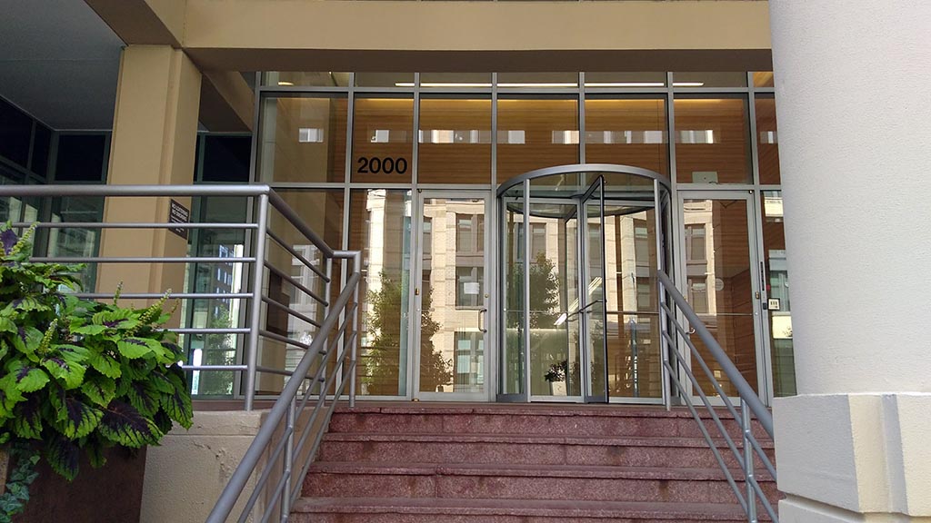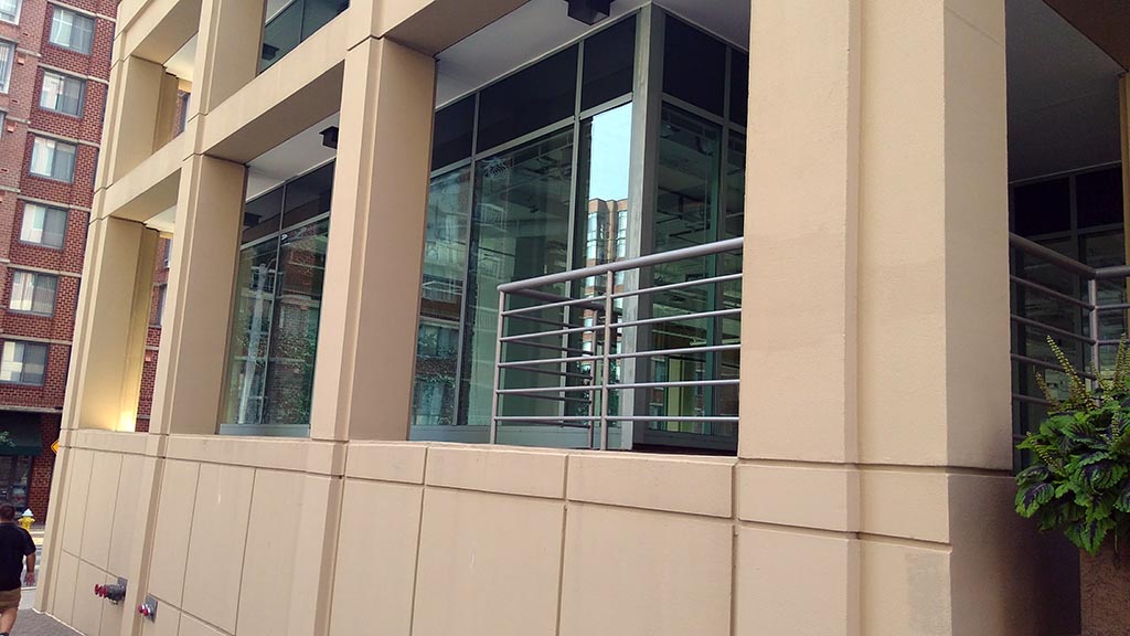 The space on the ground floor of a large office building is close to the county courthouse complex and police headquarters, and across the street from the Tellus apartment building. Signs in the window indicate another ground-floor unit in the same building as the planned restaurant is available for rent by a retail tenant.