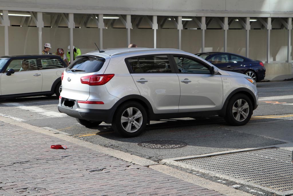 The crash happened at the intersection of Wilson Blvd and N. Randolph Street at around 10:30 a.m. A woman crossing the street was struck by a silver SUV and left unconscious and bleeding from the face, according to scanner traffic.