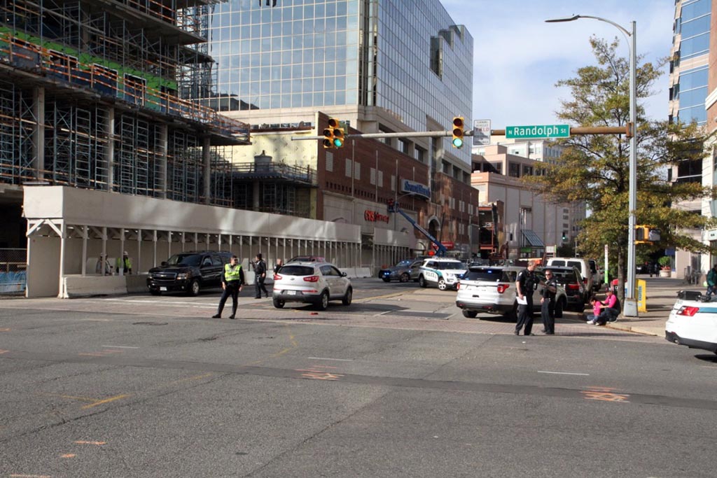 Cars heading west were being diverted onto N. Randolph Street from Wilson Blvd. The driver stayed on the scene and was interviewed by officers, clearly upset by what had happened.