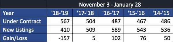 - No Time To Wait: 30% of homes listed since November 3 went under contract in five days or less. Of the 410 homes listed for sale since November 3 that are under contract or closed, they averaged just 17.5 days on market which is 3x faster than the average time properties spent on the market the rest of 2018.