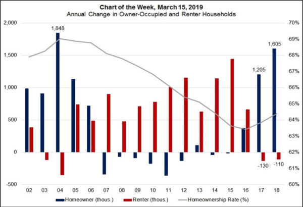 On a National level, the US Census Bureau is reporting a third straight year in increased home ownership with 2018 being by far the largest growth we’ve had in home ownership since 2004. The numbers of renters dropped for a second year in a row, the first drop in National rental rates since 2004.