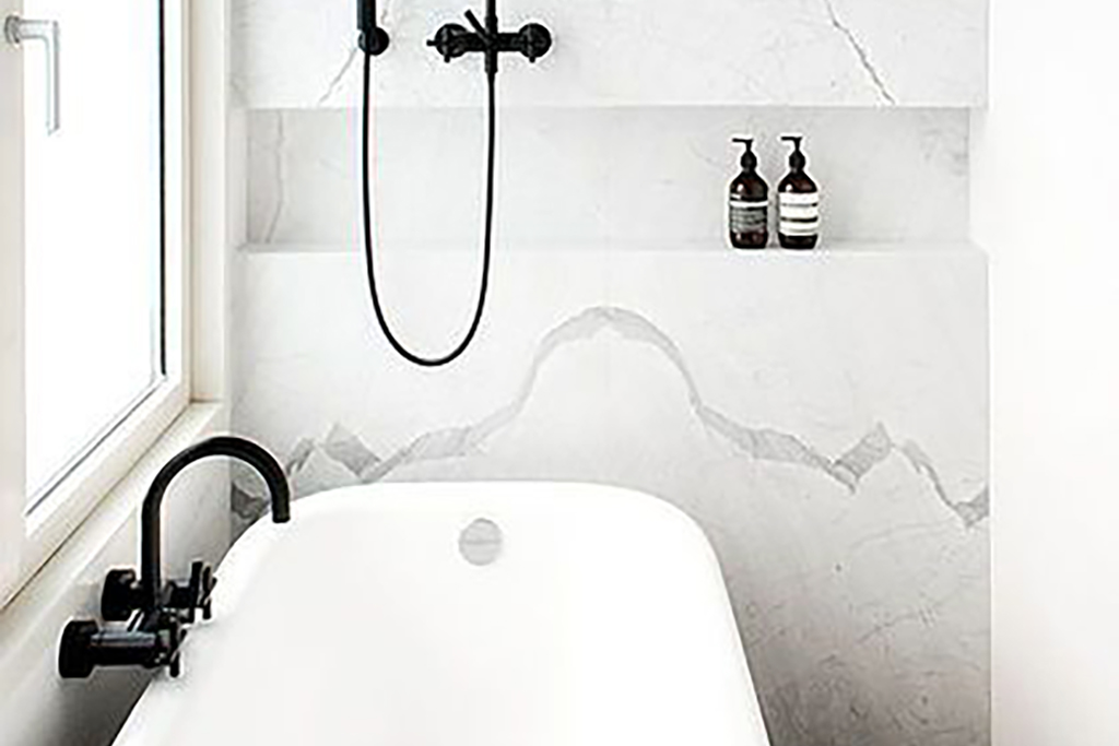- Wall-Hung Faucets — Not only does this create more counter space, but it makes for a sleek and modern bathroom.