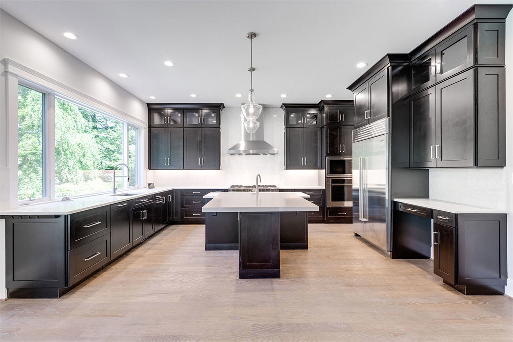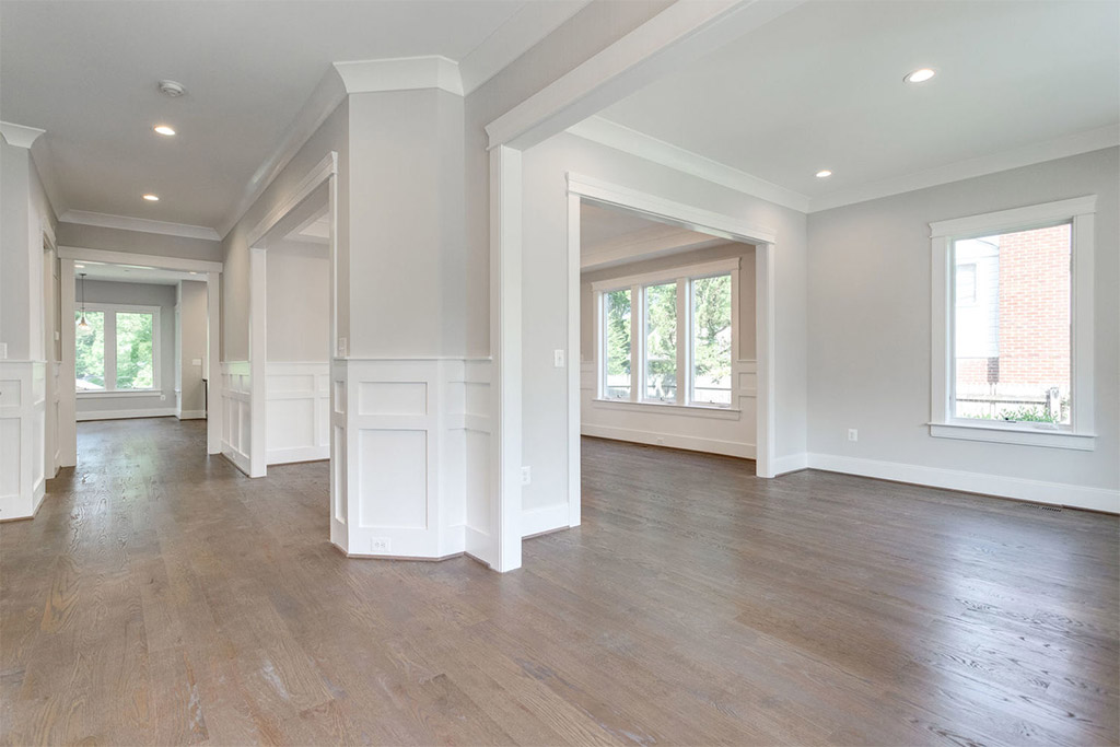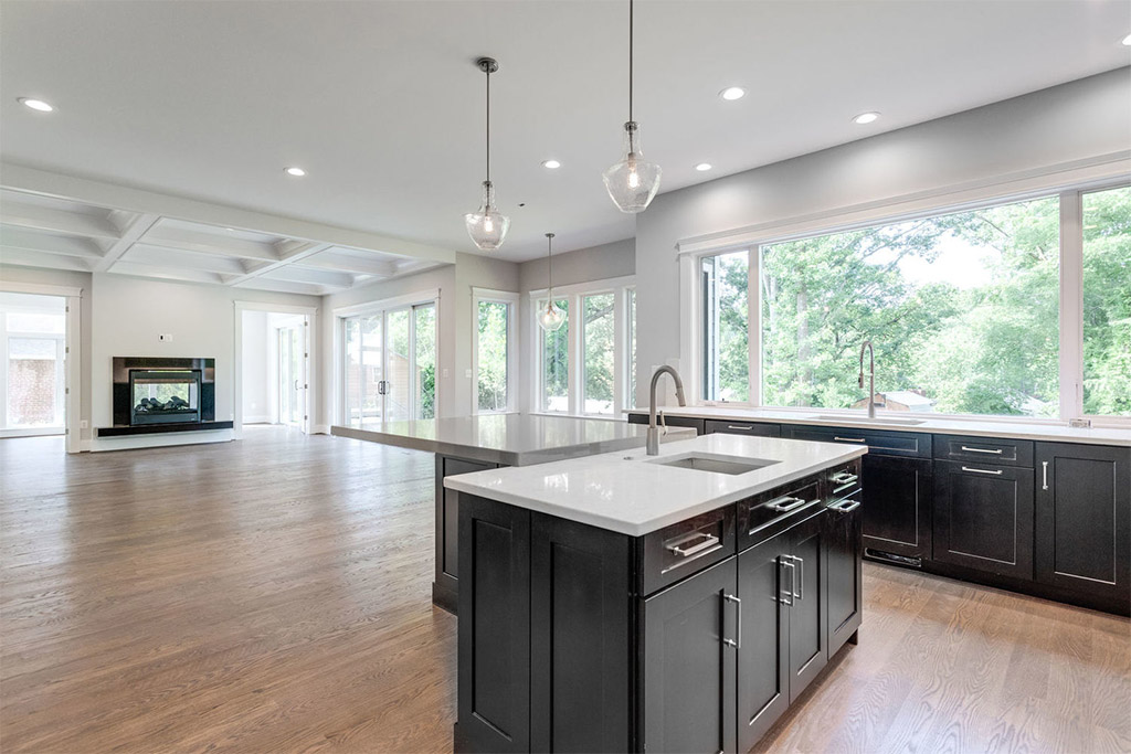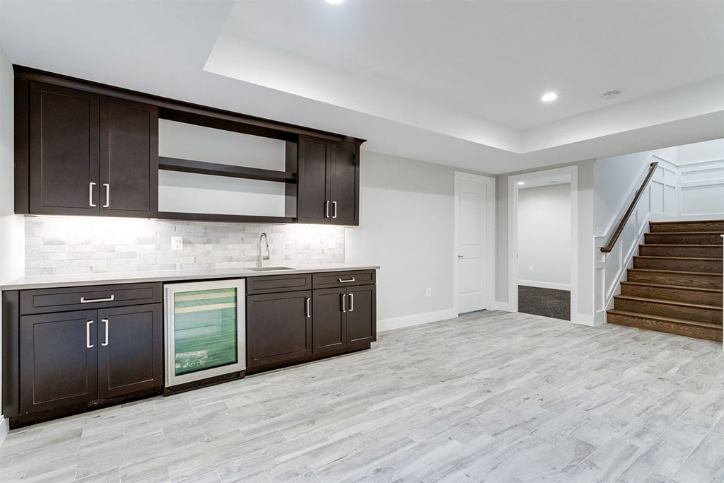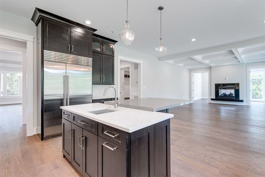 Neutral interiors allow for endless possibilities when it comes to adding one’s personal touch later through furnishings and décor, and yet, neutrals are anything but boring to begin with. Playful greyscale schematics are carried out throughout the home from rich espresso cabinetry and bright white countertops to gray and white tile bath patterns. The juxtaposition of warm wood and cool marble tones throughout the home is both striking and refreshing.