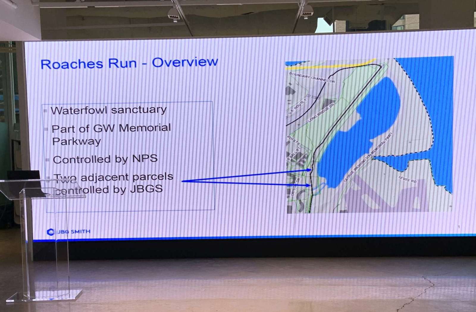 Though Roaches Run is controlled by the National Park Service and is part of the GW Parkway, JBG owns parcels of land adjacent to the waterfowl sanctuary and could help link it to Crystal City. That would give the rapidly-developing neighborhood newfound accessibility to natural spaces.