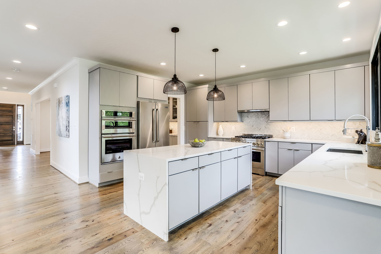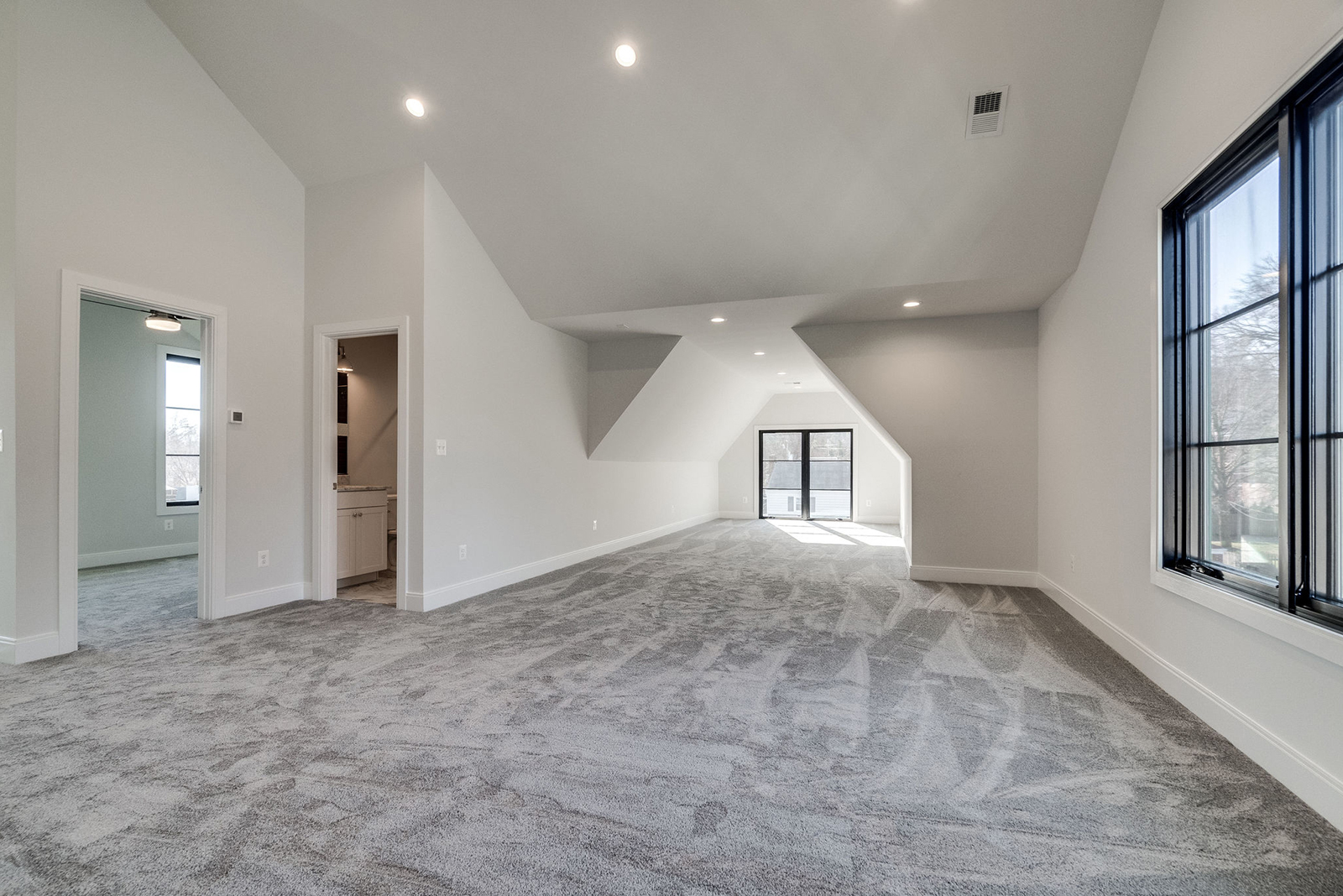 The second level includes a laundry room with cabinetry and sink, three secondary bedrooms each with private baths, and a luxury master suite! You’ll feel like you are living in a luxurious resort with the crisp, clean lines of the white and gray details in this gorgeous bath.