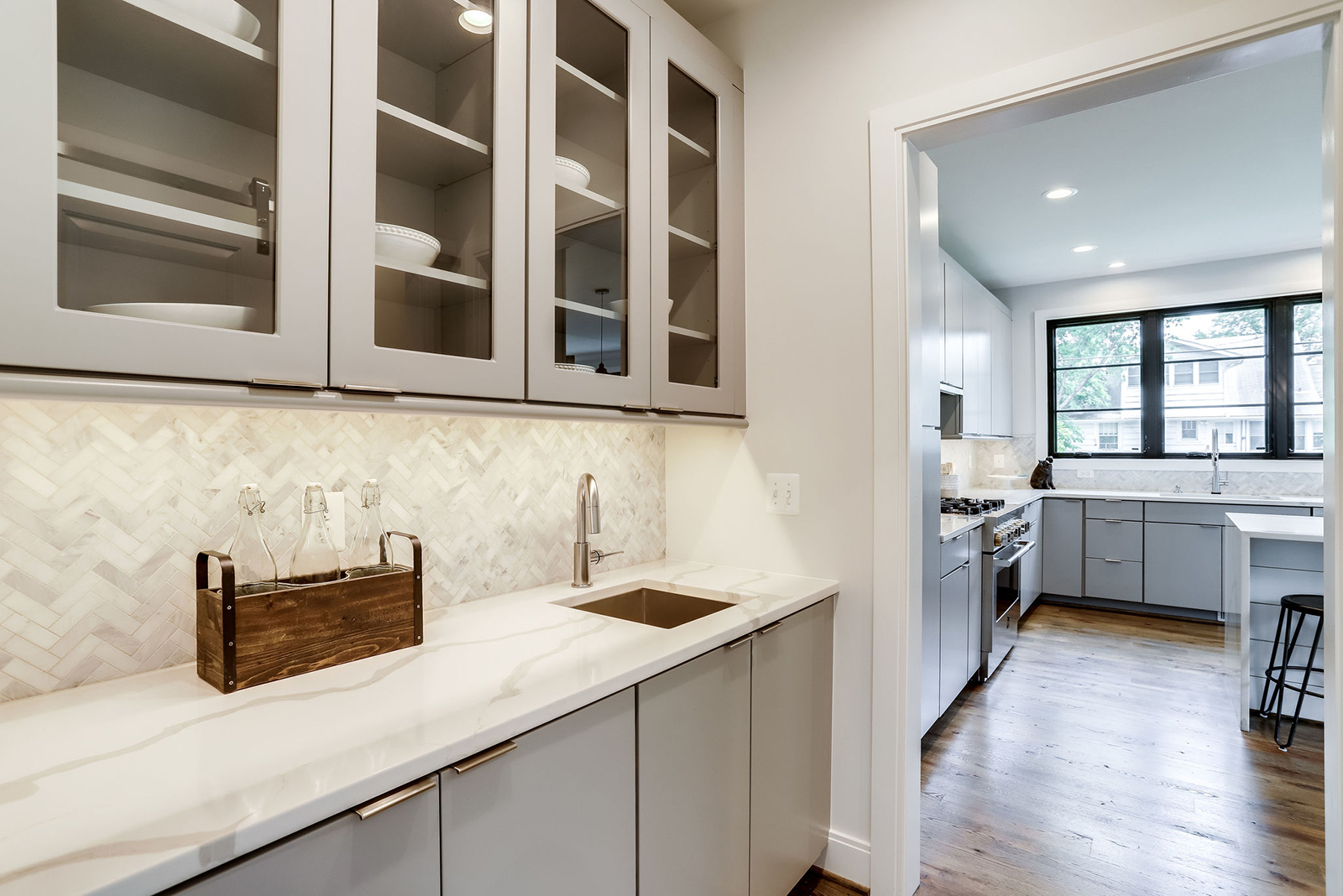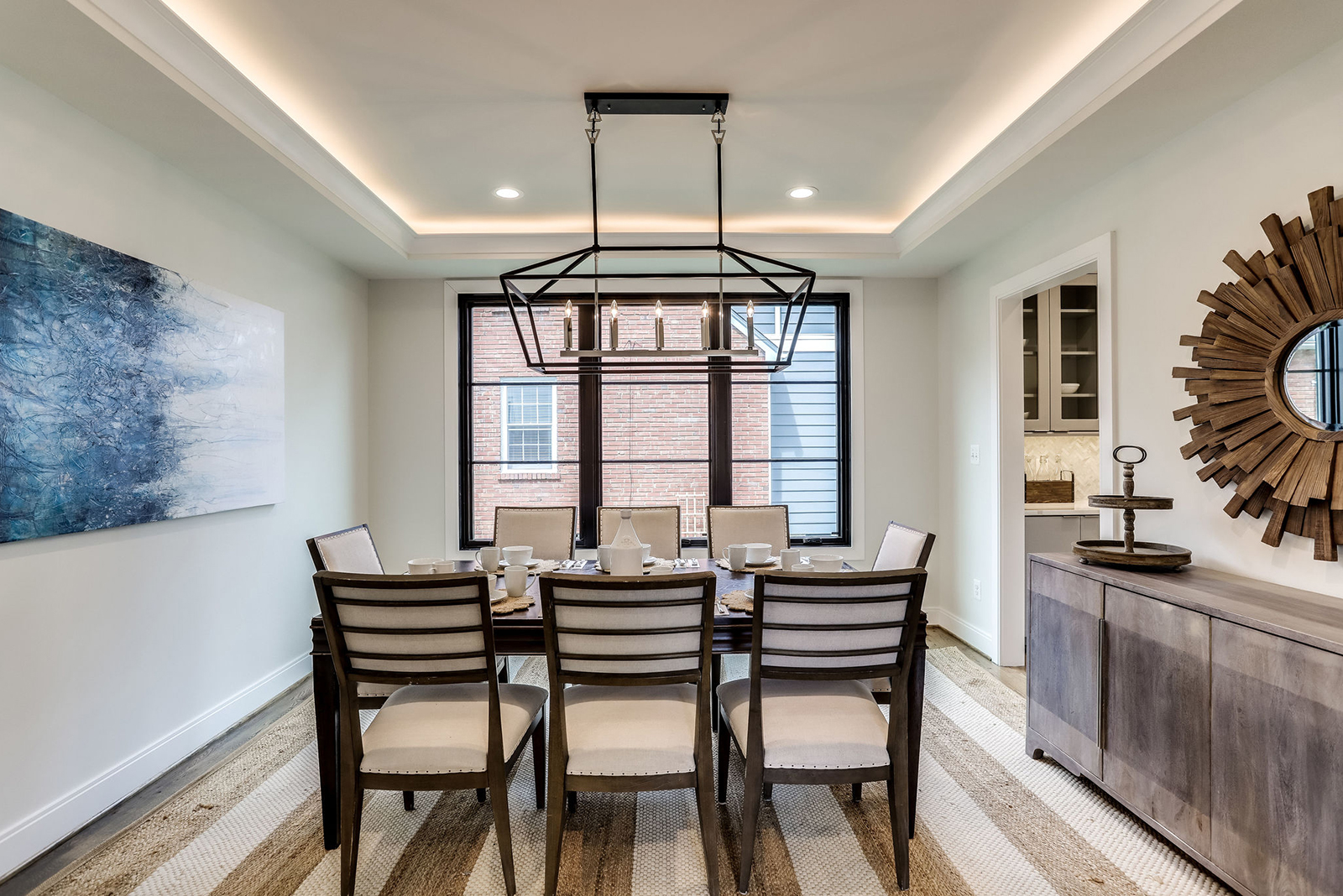 Eating together around the table for all meals is emphasized in this new home with a beautiful dining room located in the heart of the main level that can easily accommodate eight people. A butler’s pantry fully equipped with cabinetry and sink as well as a walk-in pantry connects the dining room to the kitchen.