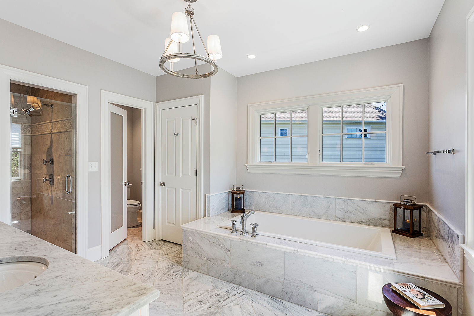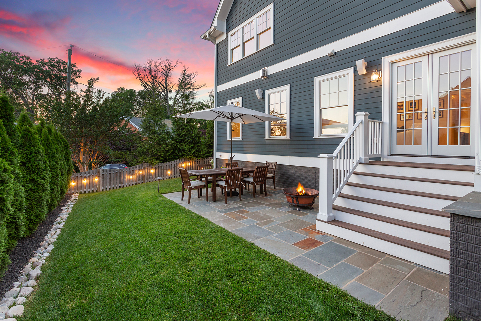The master suite has gorgeous sunset views, a massive double walk-in closet and relaxing en suite bathroom with marble finishes. There is a recreation room in the basement with space for games and a theater, plus a custom wine closet, additional bedroom and gym or additional bedroom. The fenced in backyard provides a stone patio, green space and mature greenery for privacy. The 2 car garage has custom mudroom built-ins.