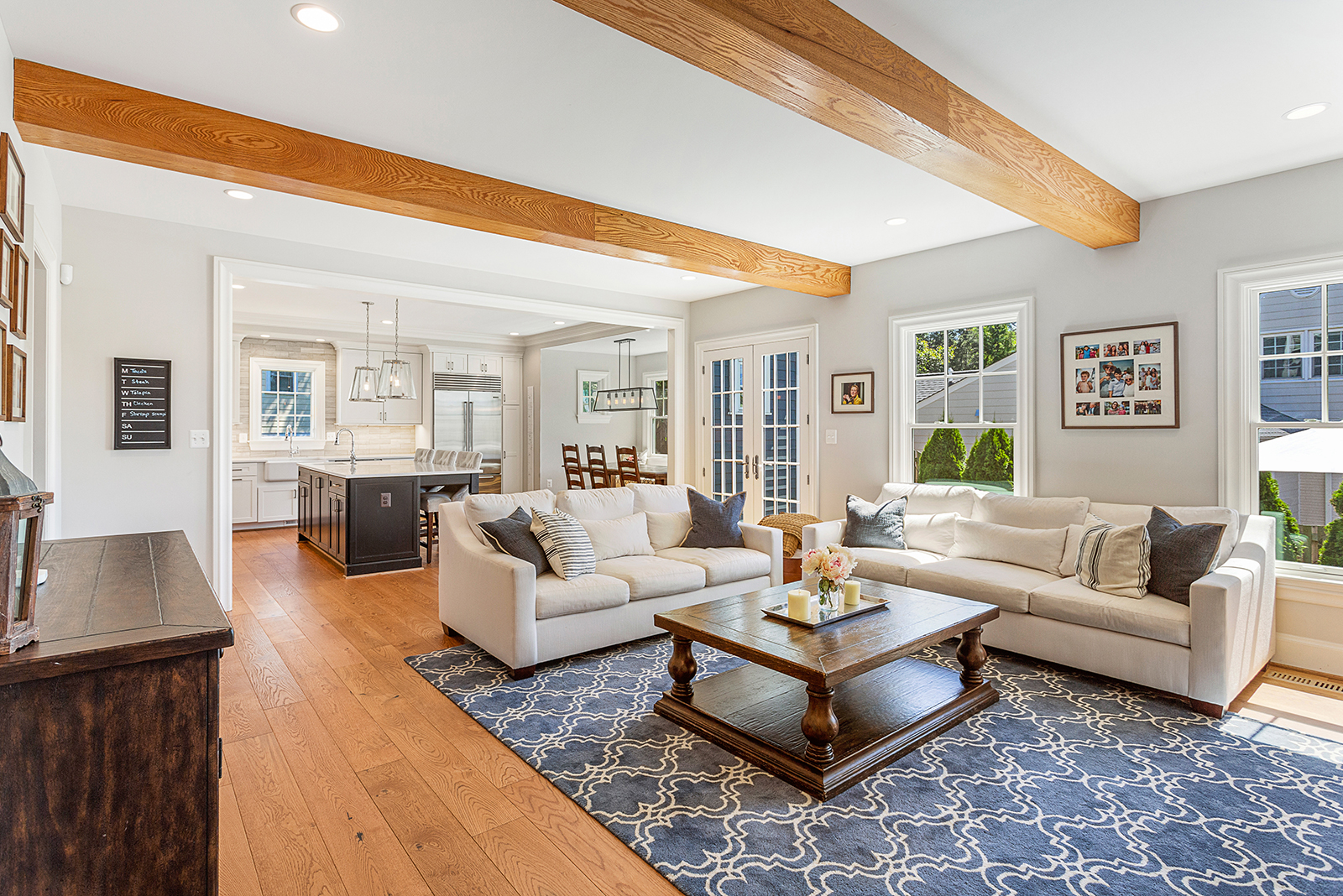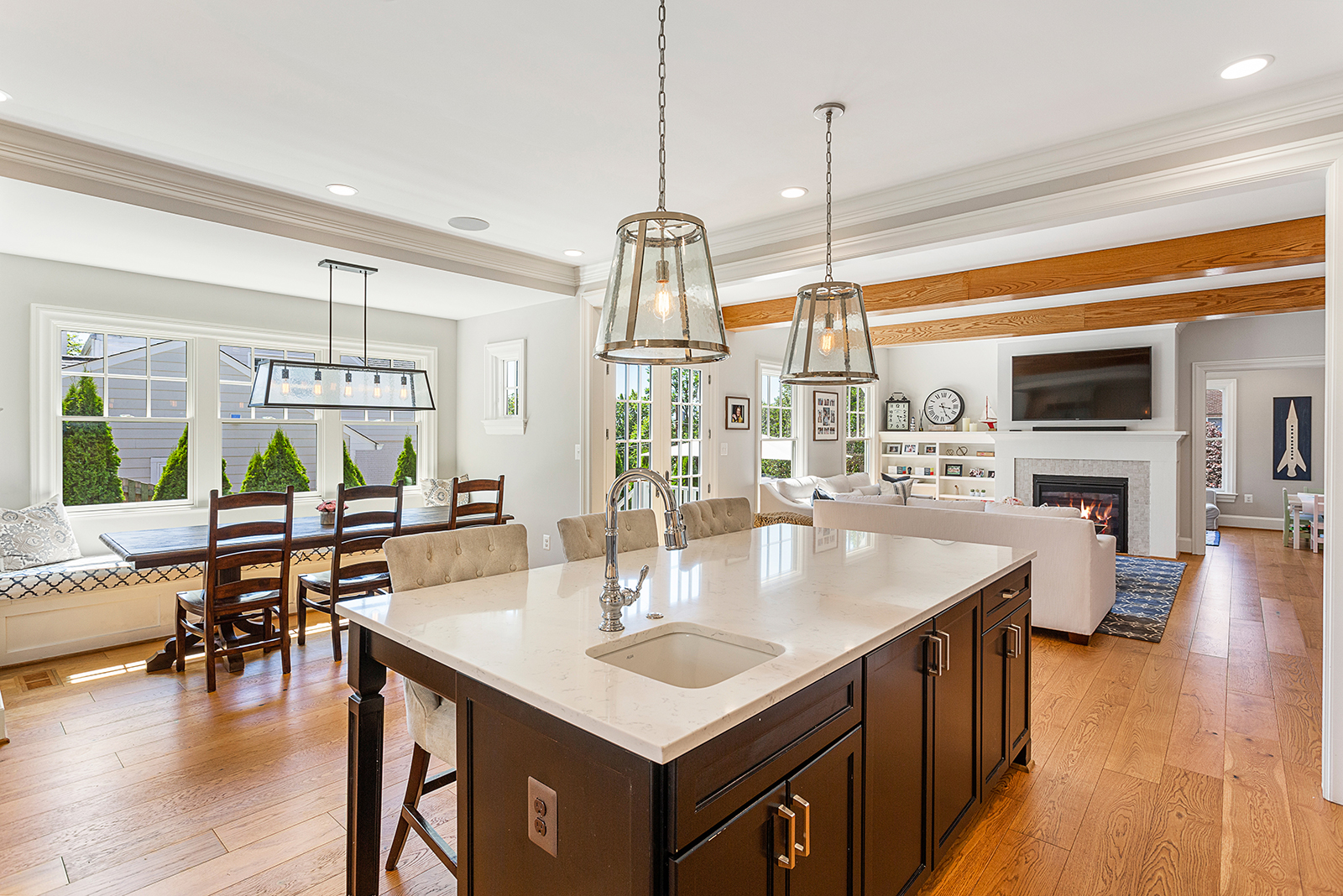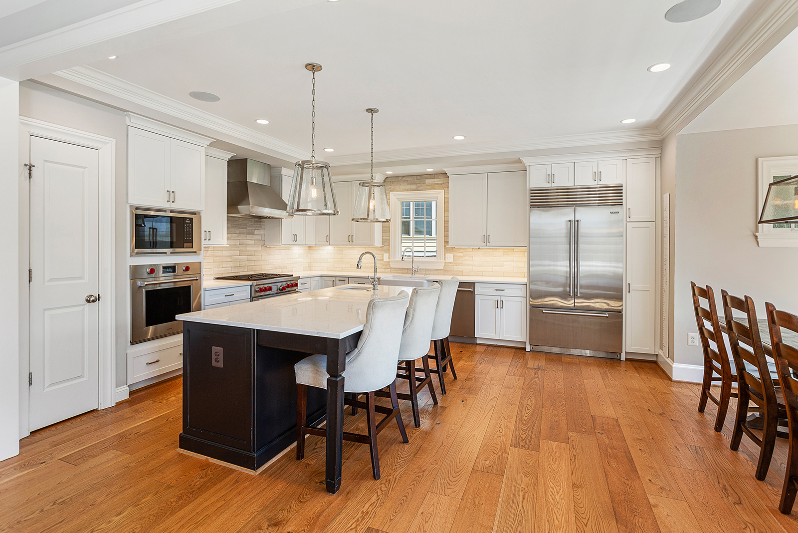 Instantly upon entry, you are greeted by gleaming, wide-plank hardwood floors, high ceilings and tons of natural light. The open floor plan provides plenty of space for entertaining or relaxation, with gourmet kitchen with Wolf appliances, large center island, adorable breakfast nook, and cozy family room with exposed beams and fireplace. The wide staircase with distinct shiplap walls leads you up to 4 spacious bedrooms and plenty of closet space.