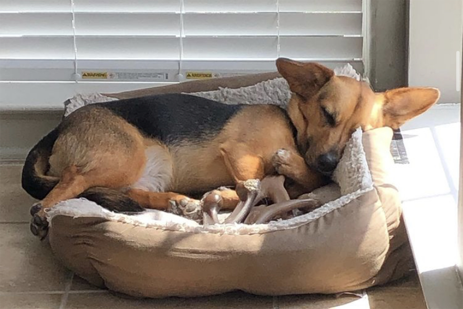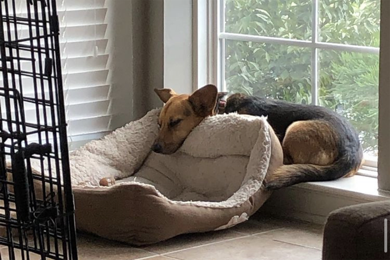 Elway very much appreciates that the rest of the family has chosen to stay home with her for so many months and is now NOT thrilled when everyone leaves without her! So rude. But Elway is very food motivated and quickly forgives with a treat/carrot/apple/heartworm pill — really, she’ll eat anything.