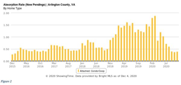 Absorption Rate (Figure 2), a measure of demand, increased ever-so-slightly in November, the first increase since May, albeit still down nearly 68% from the December 2019 Absorption Rate.