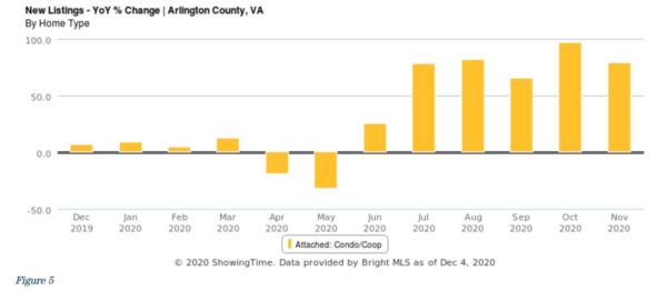 For example, while the charts above are positive indicators for the condo market, Figure 5 shows just how much inventory (new listings) is still coming onto the market, with November generating nearly 79% more condo listings in 2020 than in 2019, but only a 41% increase in contract activity.