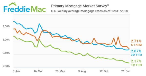 Answer: Happy new year everybody! Historically low mortgage rates in 2020 were one of a few factors that drove real estate prices up across the country (except in the condo market). This time last year, the Mortgage Bankers Association and Freddie Mac each predicted that rates would remain near 2019 levels through 2021, with an average 30-year fixed rate hovering around 3.7% to 3.8% through that period.