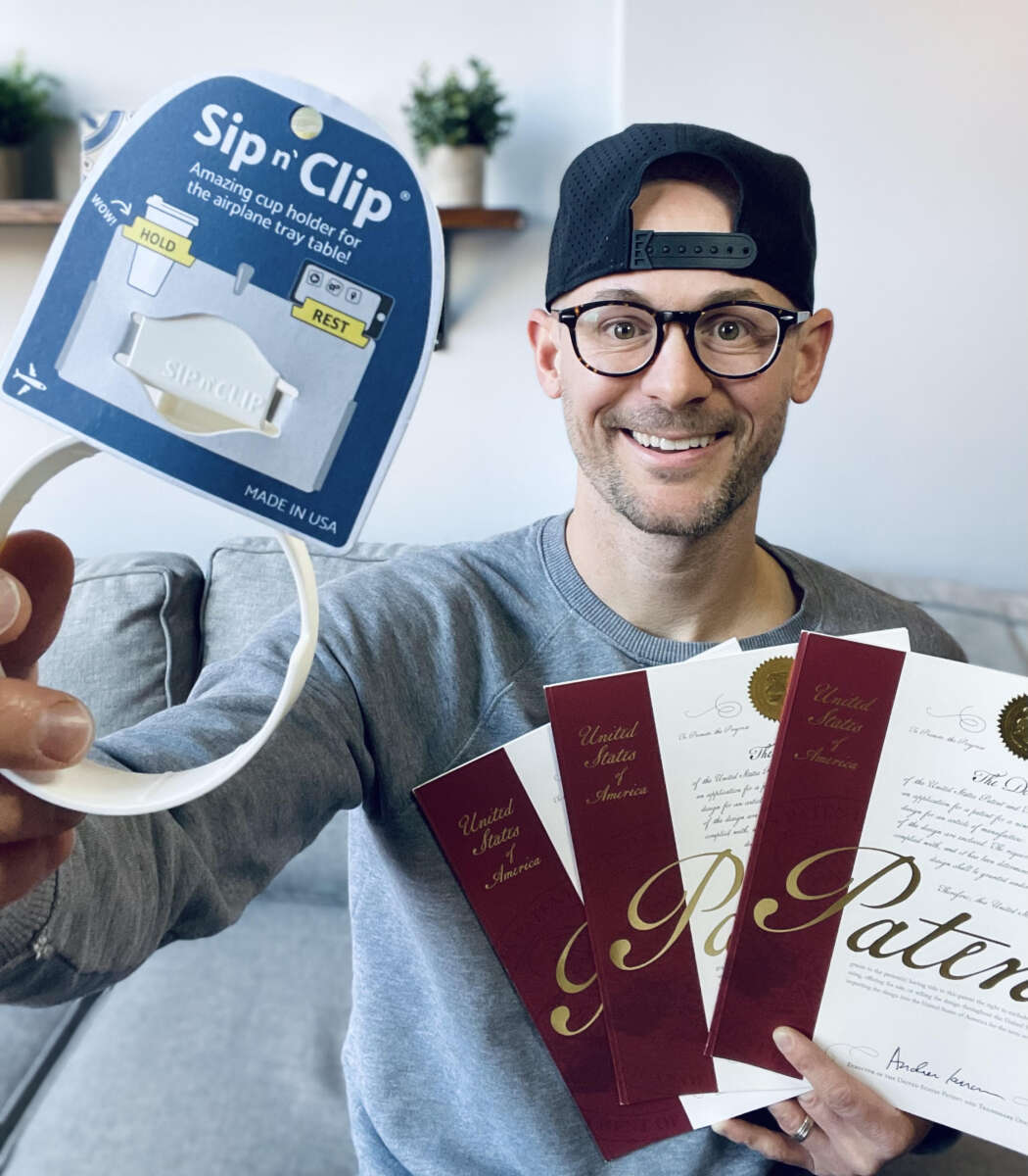 LaPierre has developed, patented and trademarked the “Sip n’ Clip” — a cup holder that clips into tray tables. He came up with the idea on a flight to Paris when his wife was trying to find a place to store her large coffee so it wouldn’t spill on the floor or get squished by the backseat pouch.