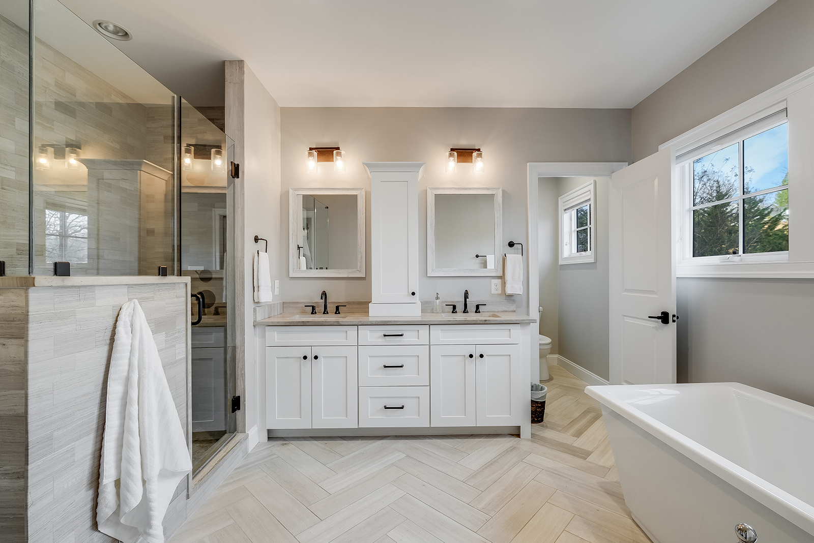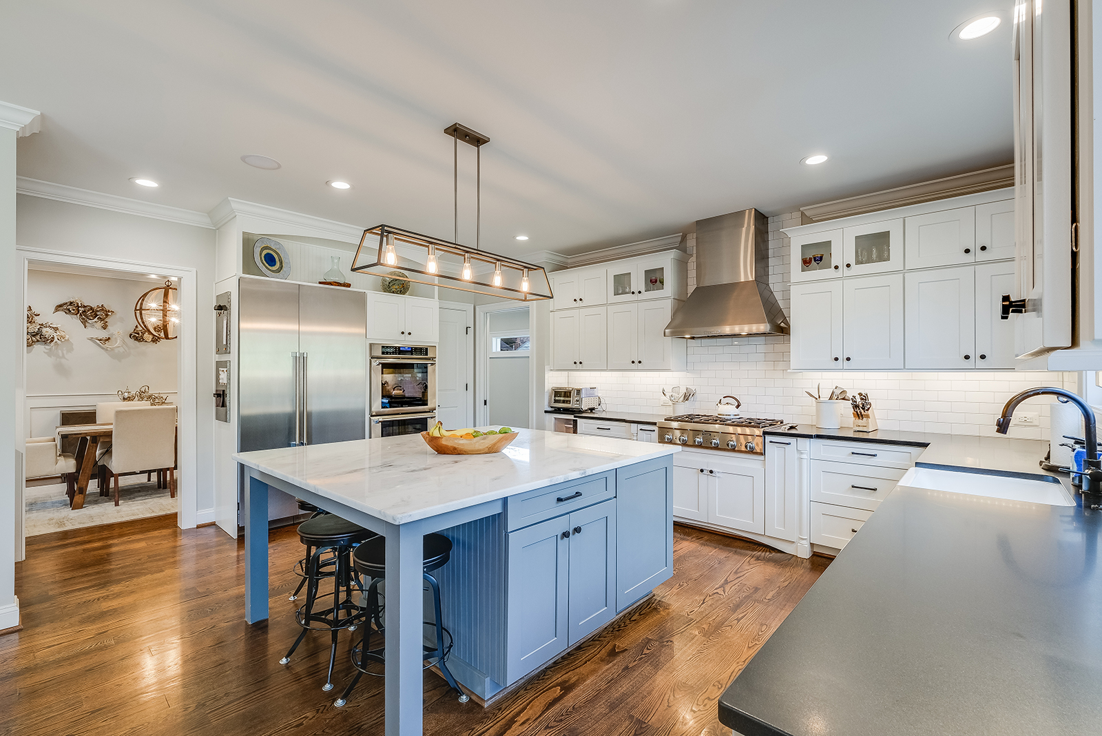 The main level includes a generously-sized office, convenient half bath and private dining room. The expansive Chef’s Kitchen is highlighted by a grand island with breakfast bar seating, quartz countertops opening to the Great Room, boasting a cozy gas fireplace. Kitchen highlights include upgraded stainless steel appliances, a double wall oven, opulent white cabinetry, luxurious custom mill work, and a Butler’s Pantry that flows to the mudroom and garage.
