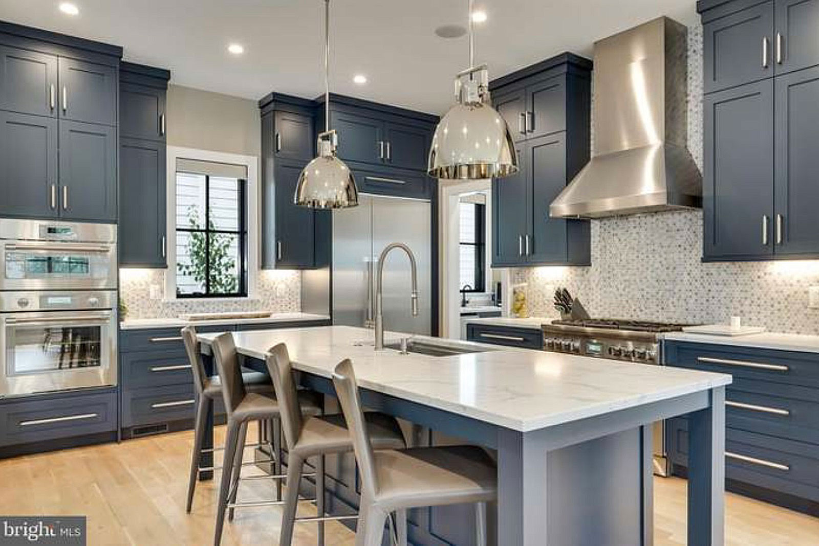 Gourmet kitchen with Thermador WIFI appliances, Quartz countertops, six-burner range and wall unit housing a second oven and built in microwave. Cozy screened in porch with privately fenced in yard, SONOS sound system, 4th level roof deck, open concept living spaces, and butler’s pantry make this a dream home for entertaining.