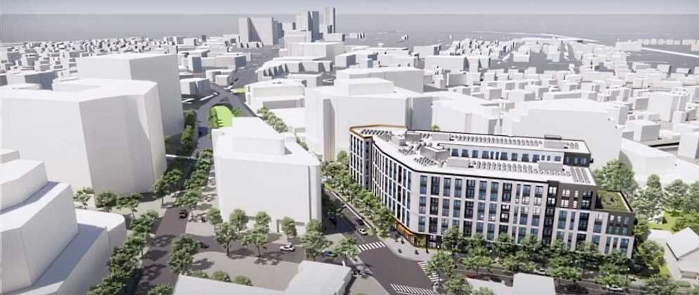 Current plans call for about building 6,000 square feet of ground-level commercial/retail space and eight committed-affordable units, while reusing 323 spaces in an underground parking garage.