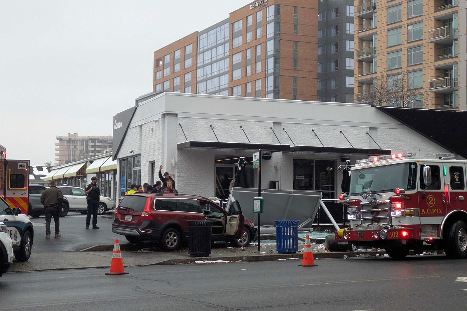 The reported single-vehicle crash happened just before 1 p.m. Friday on the 3900 block of Wilson Blvd, at the entrance to the parking lot of the &pizza, Gold’s Gym and other businesses.