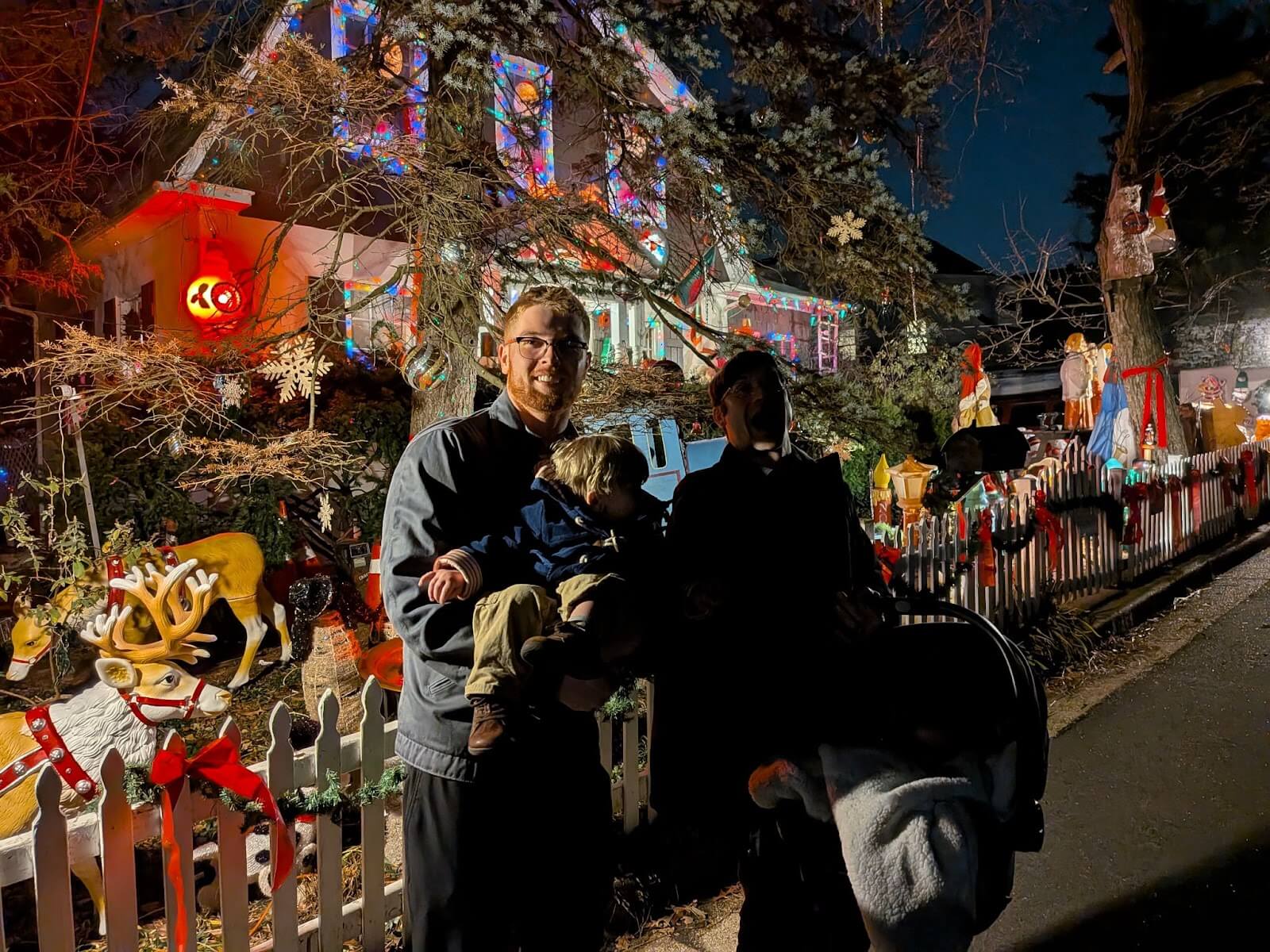 My son was lifted up to overlook the vast array of vintage Santas, a life-size Thomas: The Train Engine, Garfield with his lasagna in tow, and a toy-shop window display. As I look out onto the scene I’ve admired for three decades (many years where I, too, had to be held up to get a decent view), the magic was less about the mythical characters, but the humans behind it. First, the logistics of pulling this off year after year are impressive. But mostly, I was taken aback by the dedication and gift these neighbors continue to give.