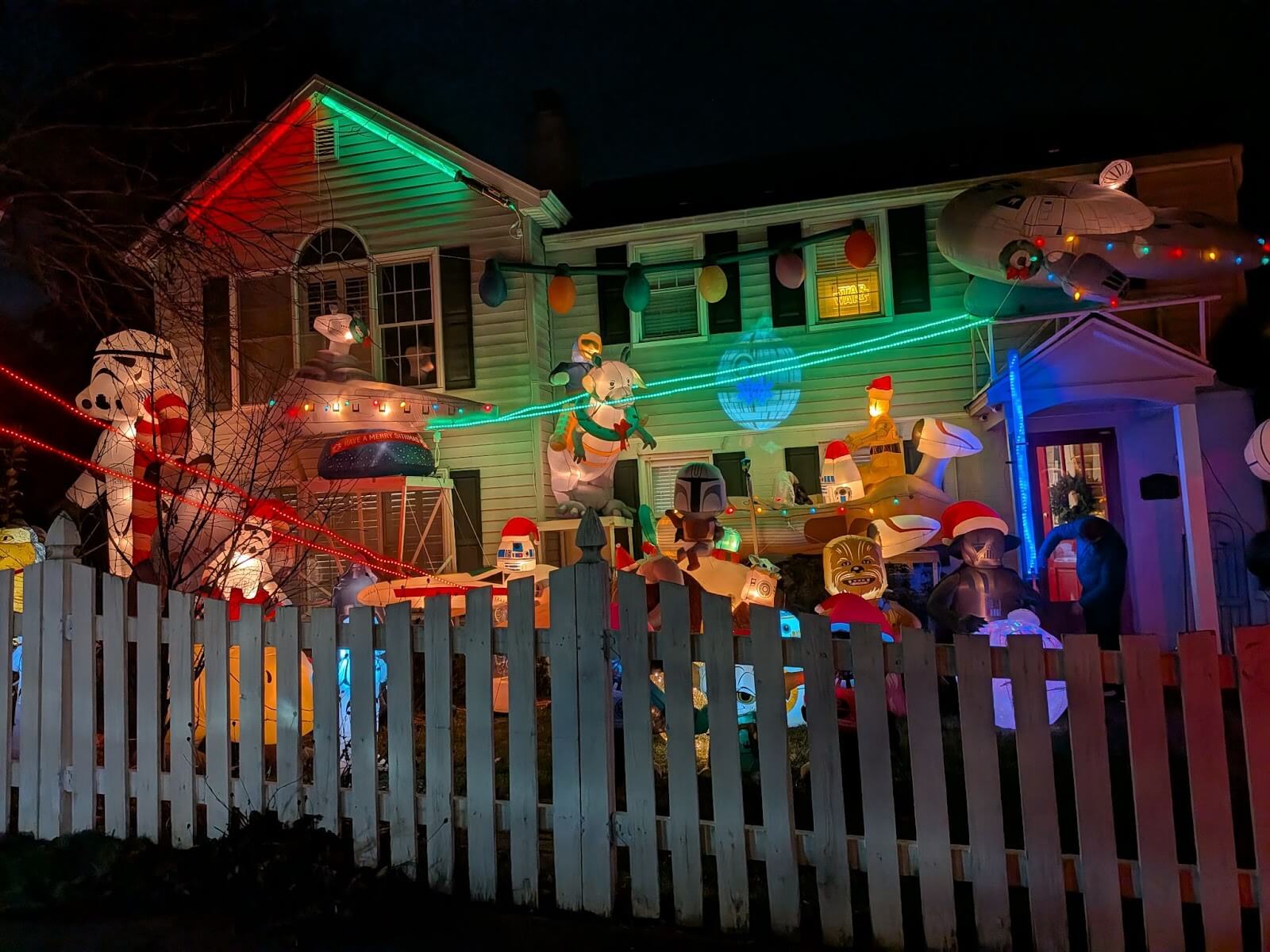 961 Patrick Henry Drive: Christmas in a galaxy far, far away is right here in Arlington. The display features the entire trilogy gang in holiday, inflatable form.