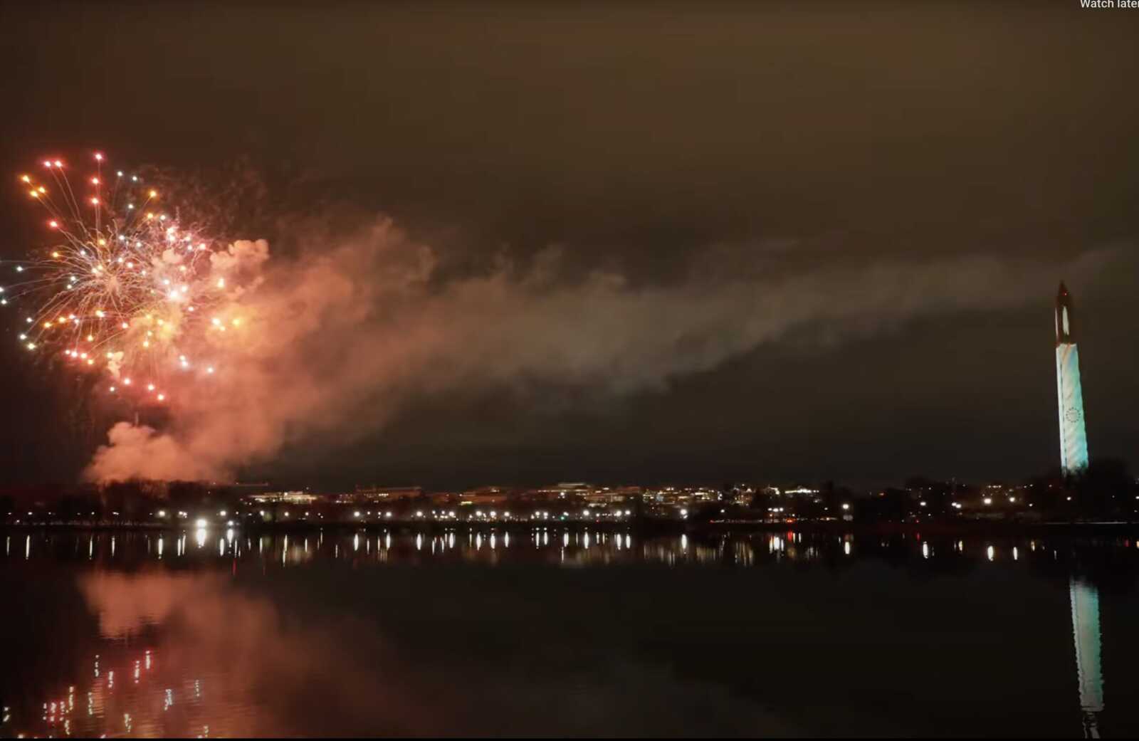 At 7:55 pm, tomorrow, 1/5/2026, there will be a brief fireworks display to celebrate the final evening of the monument projection and the United States' 250th birthday celebration in 2026.